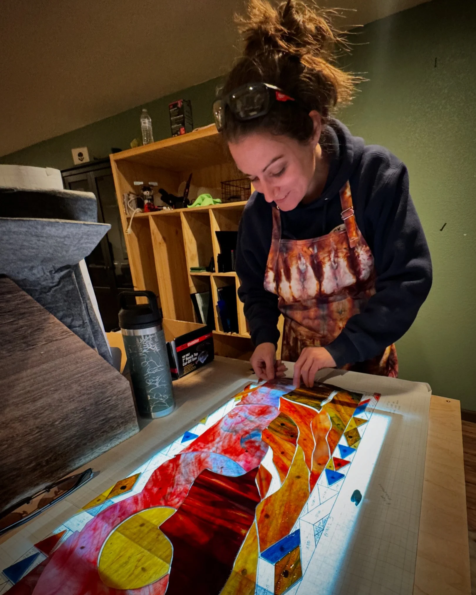 Hello! I’m Kate, the artist behind Genoa Glassworks. Based in the beautiful Lake Tahoe area, I specialize in creating custom stained glass pieces that add a unique touch of color and light to any space. I take pride in combining traditional craftsmanship with modern design to create pieces that are both timeless and visually striking.